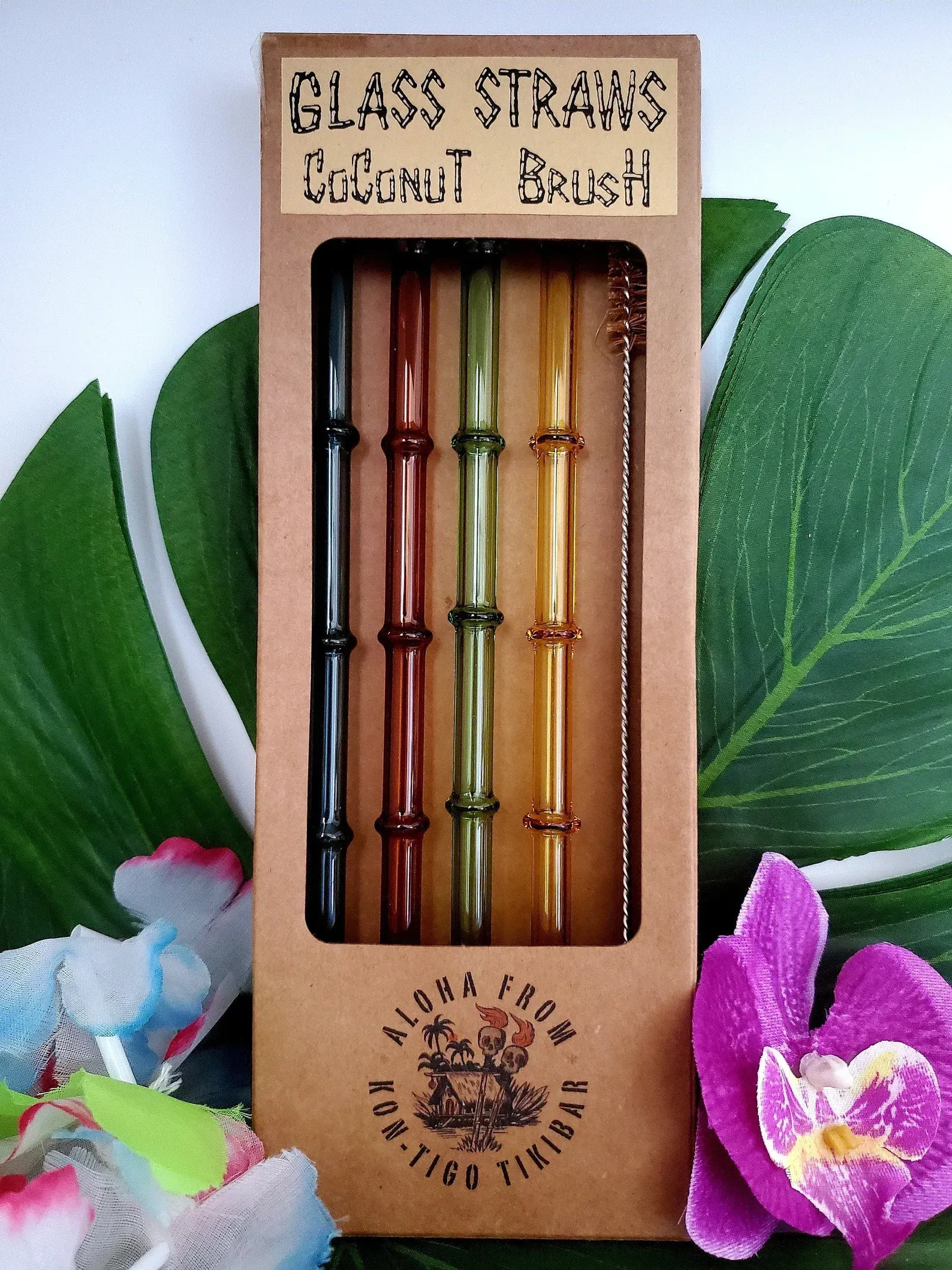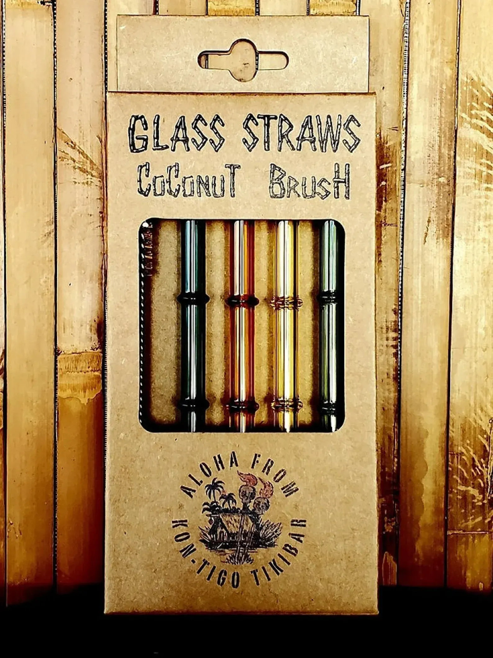 Bamboo Glass Straws: Tropical Cocktail Straws with Coconut Brush